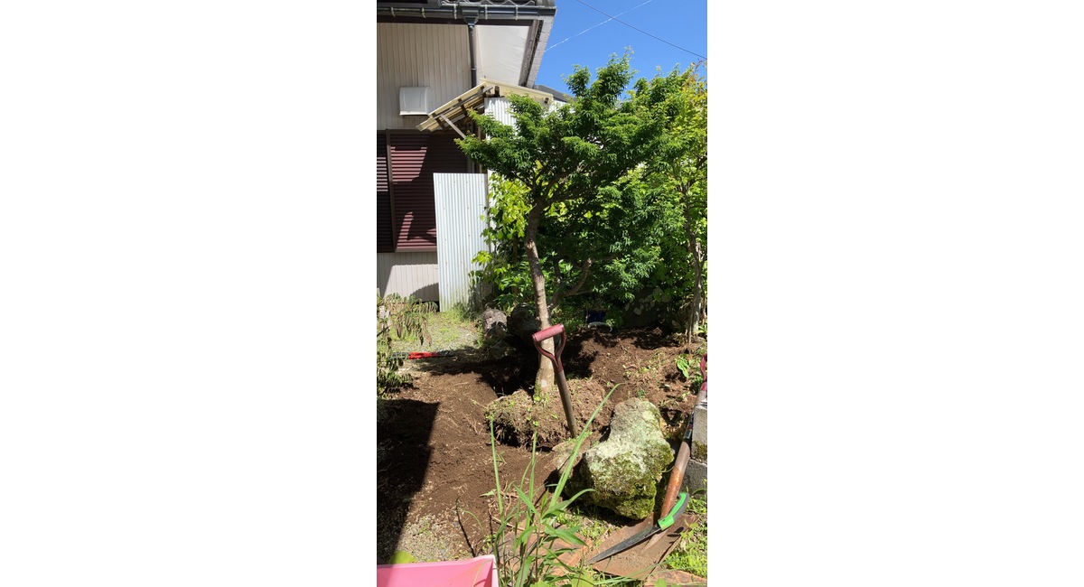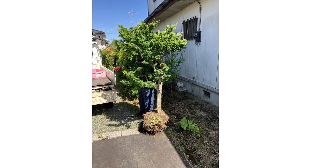 甲府市での「庭木移動」です。そんなに大きくないんですが、根がしっかり張ってました。