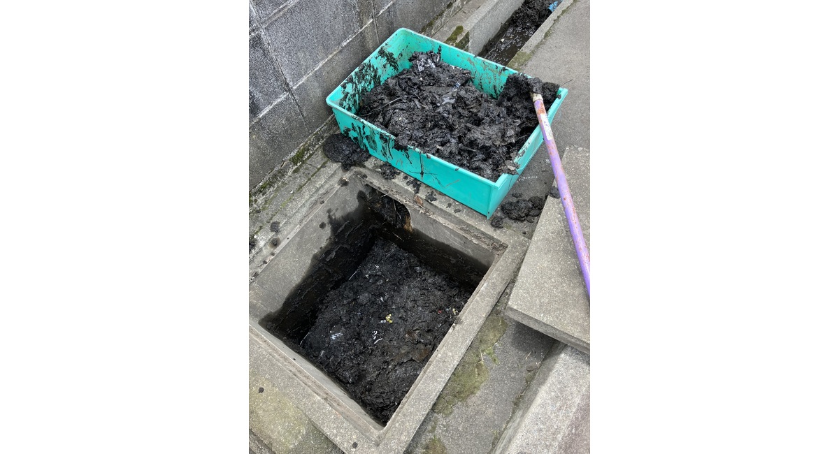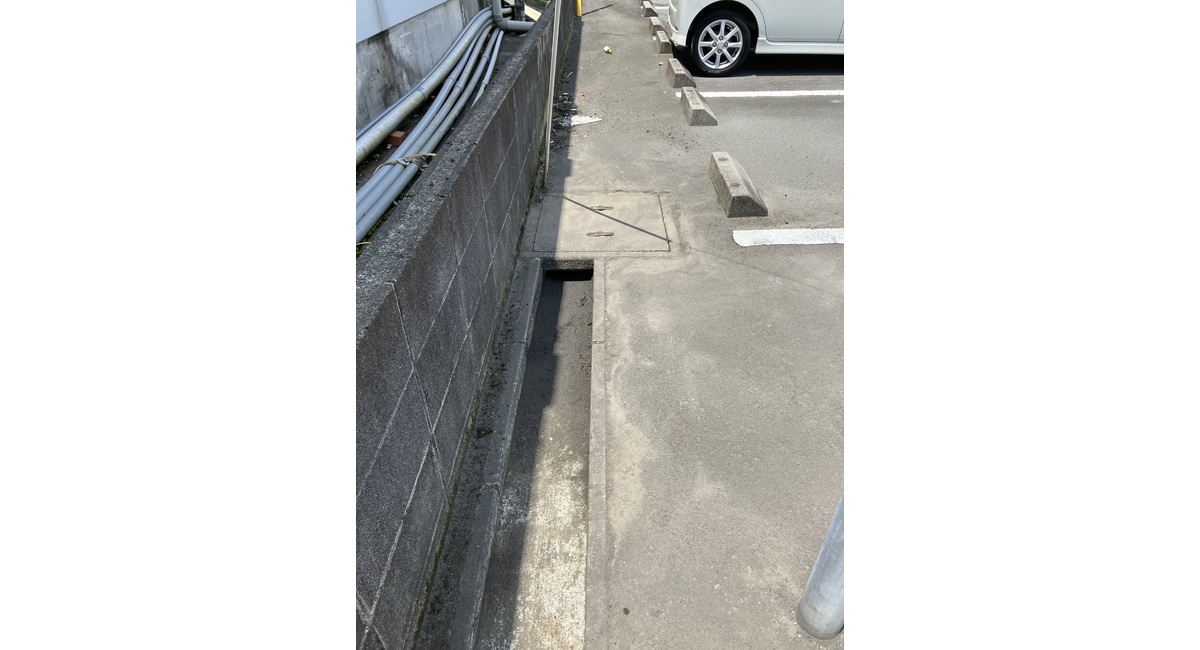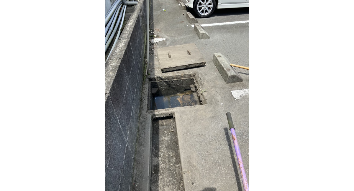 山梨県中央市での「排水溝清掃」です。 排水口がゴミで塞がっていたので、雨が降ると駐車場が冠水していたそうです。 バッチリ、清掃したので、これで一安心です。 反対側の排水溝は、逆勾配になってるので排水はされてませんでした。